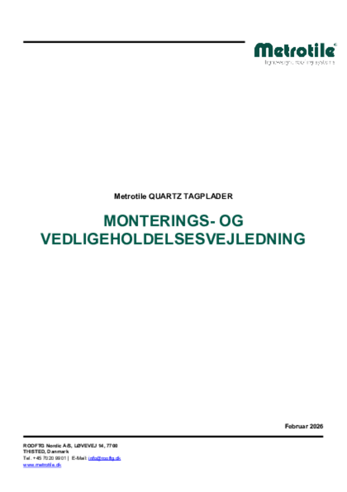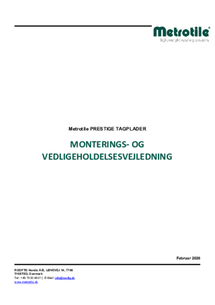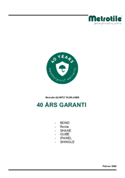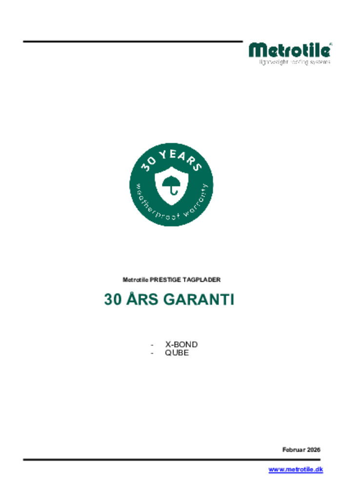Metrotile PRESTIGE garanti, montage og vedligehold