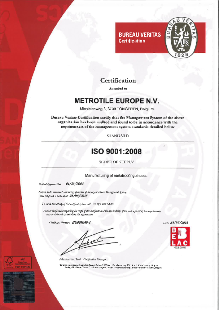 Metrotile har godkendelser på sine produkter i det meste af verden - herunder skandinavien. Godkendelserne er et produkt af virksomhedens høje kvalitets kontrol.